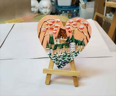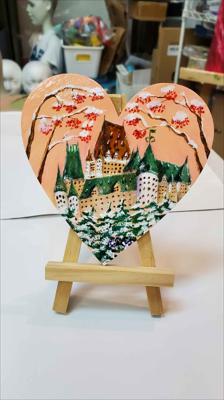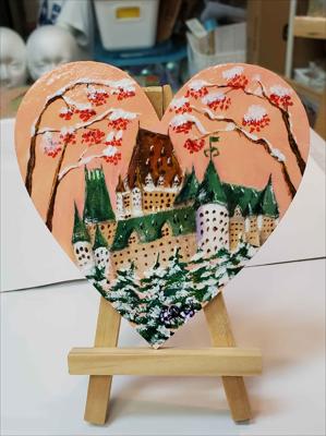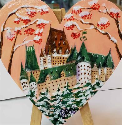 Large magnet with Chateau Frontenac pink with rowan branches in winter.