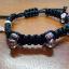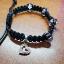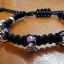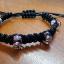 Black macrame bracelet with glass beads with pink flowers and a heart